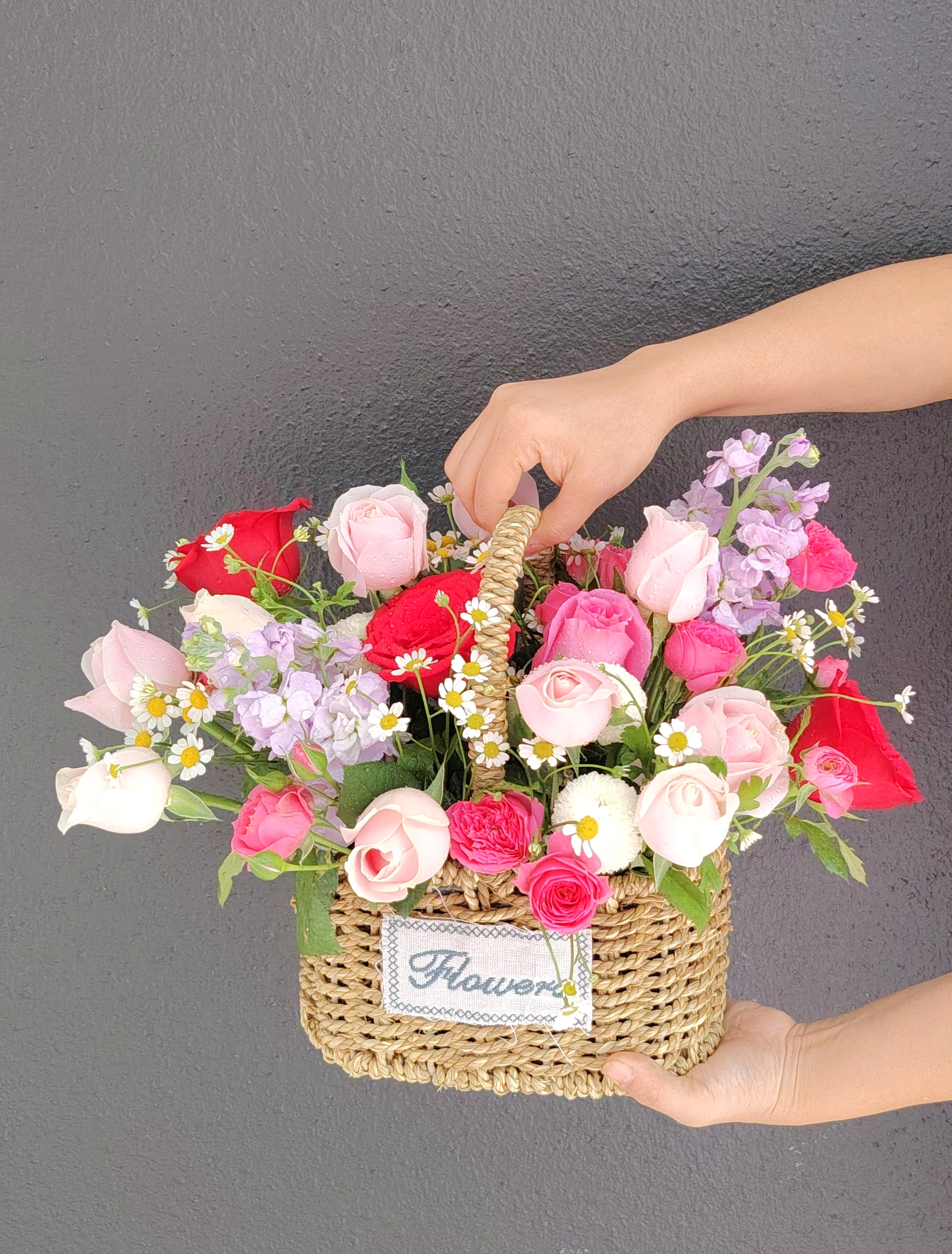 12 roses, 2 lily mathiola, rose spray, chrysanthemum and chemomile